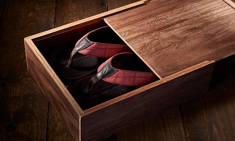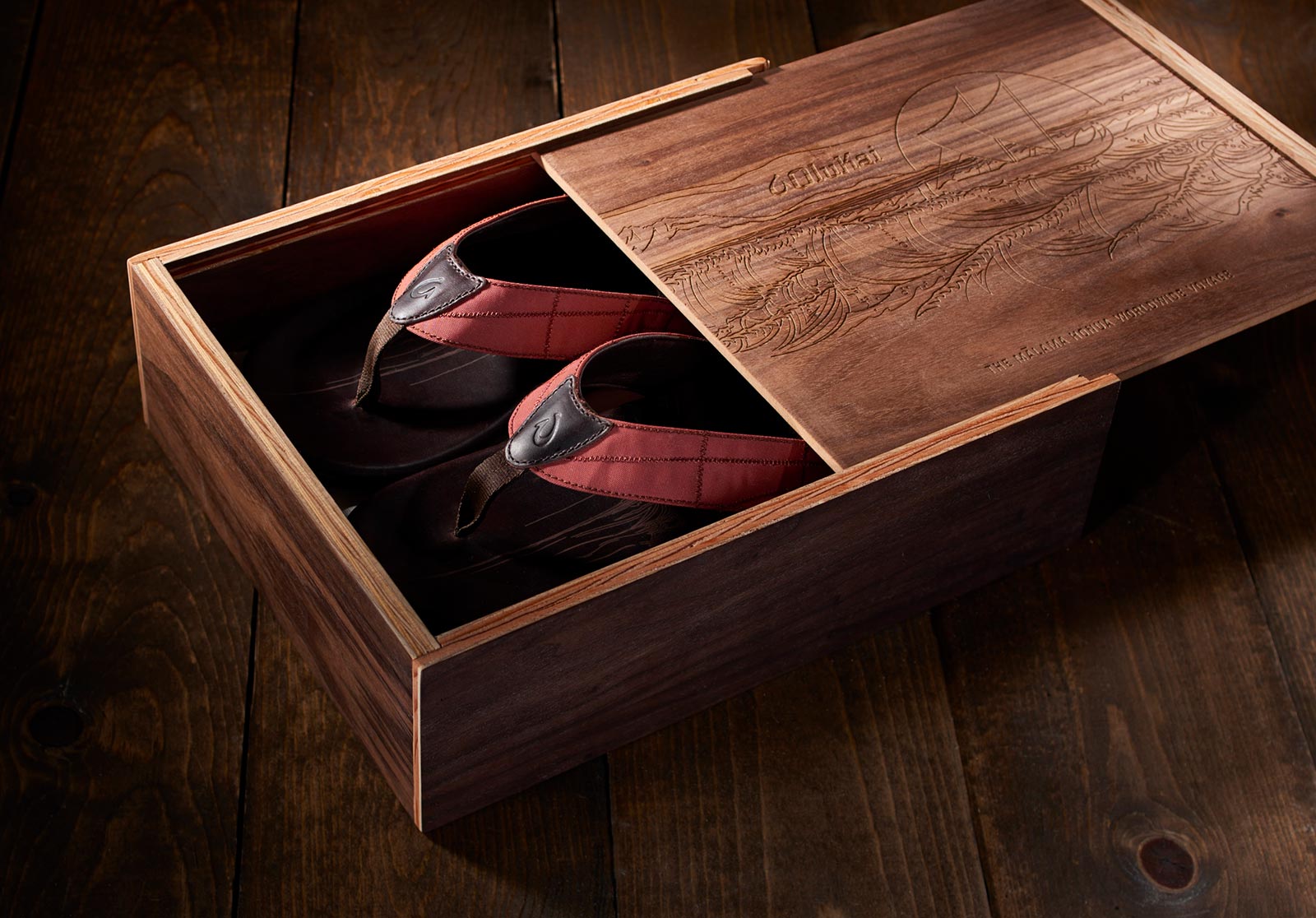 In honor of the world-famous Polynesian voyaging canoe Hōkūle’a, OluKai made a one-of-a-kind sandal using actual sailcloth used on one of Hōkūle’a’s voyages. With minimal quantities produced, our goal was to create a premium packaging for direct to consumer orders. Each pair of sandals was placed in a laser-cut wooden box with cloth shoe bag and letterpressed certificate of authenticity.